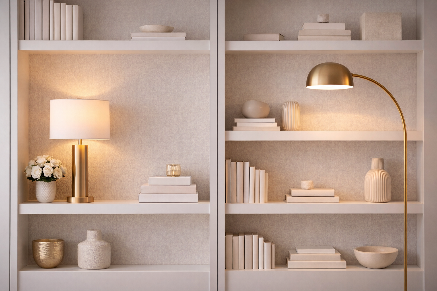- Lampe de table ou lampadaire : Pour un éclairage d’appoint.